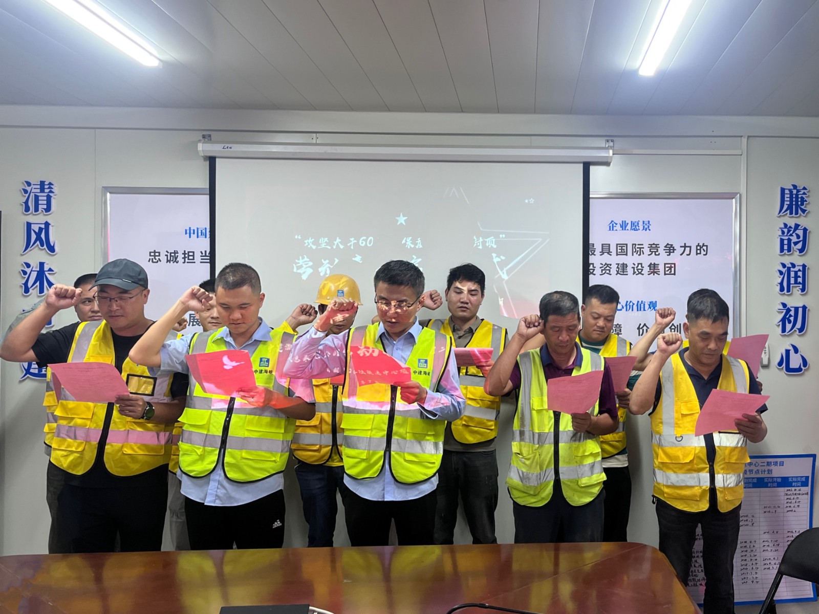 啟動儀式上,競賽主辦單位宣讀了勞動競賽方案,并進行競賽參賽隊伍授旗儀式,項目管理人員及各攻堅小組組長進行競賽宣誓。各參賽隊伍表示,將嚴格遵守競賽規(guī)則及安全規(guī)定,踐行競賽精神,尊重團隊合作,團結(jié)一致,全力以赴大干60天。本次勞動競賽將通過對各項目質(zhì)量管理、進度管理、安全生產(chǎn)管理等方面進行考核比拼,最終決出優(yōu)勝班組并予以獎勵。